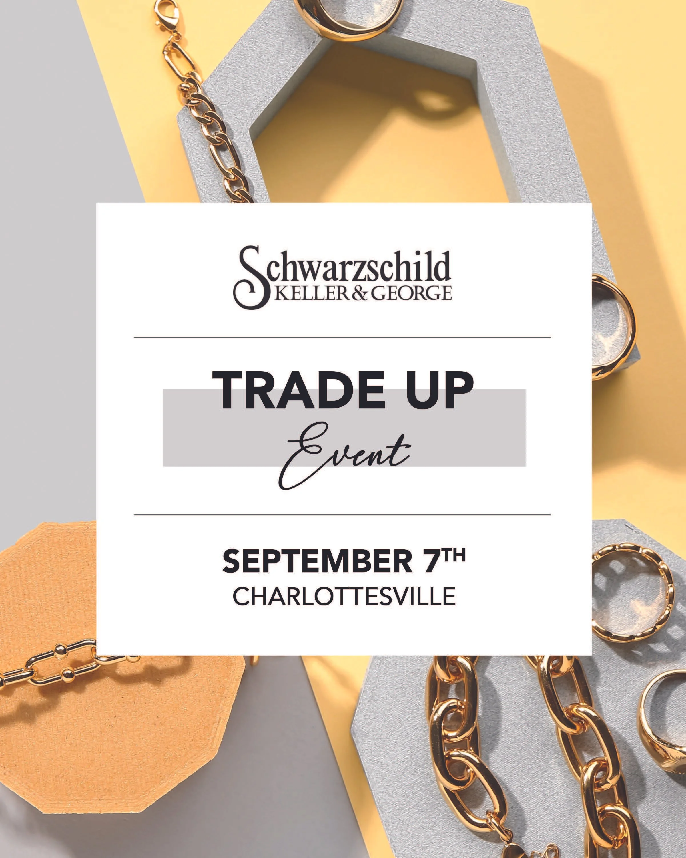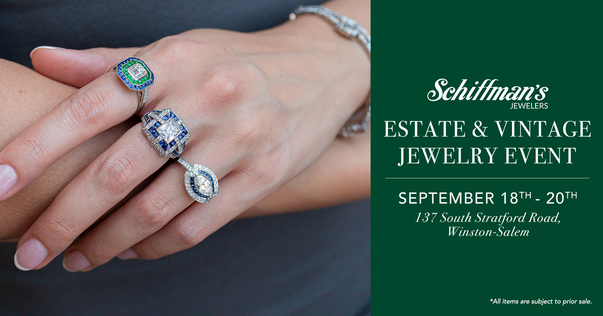 Event collateral designed for Schiffman’s Jewelers, including, signage, mailers, and print materials that elevate each event with a cohesive, refined look.